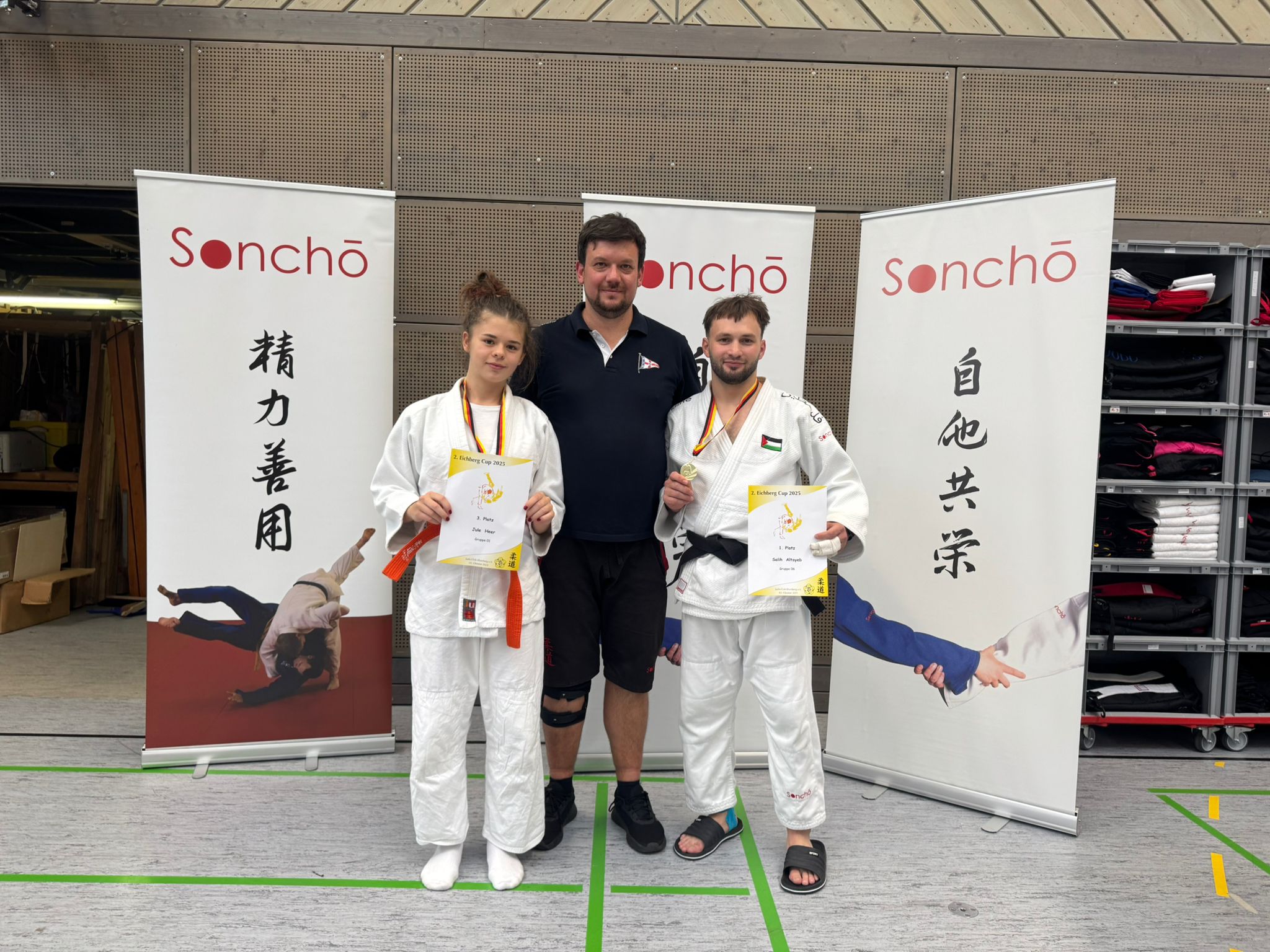 Beim Eichberg-Cup der Erwachsenen gingen Jule Heer und Salih Altayeb (ebenfalls für den JCK) auf die Matte. Salih zeigte eindrucksvolle Kämpfe und sicherte sich ebenfalls Gold, während Jule in der stärksten Gewichtsklasse des Turniers mit großem Kampfgeist Bronze gewann.